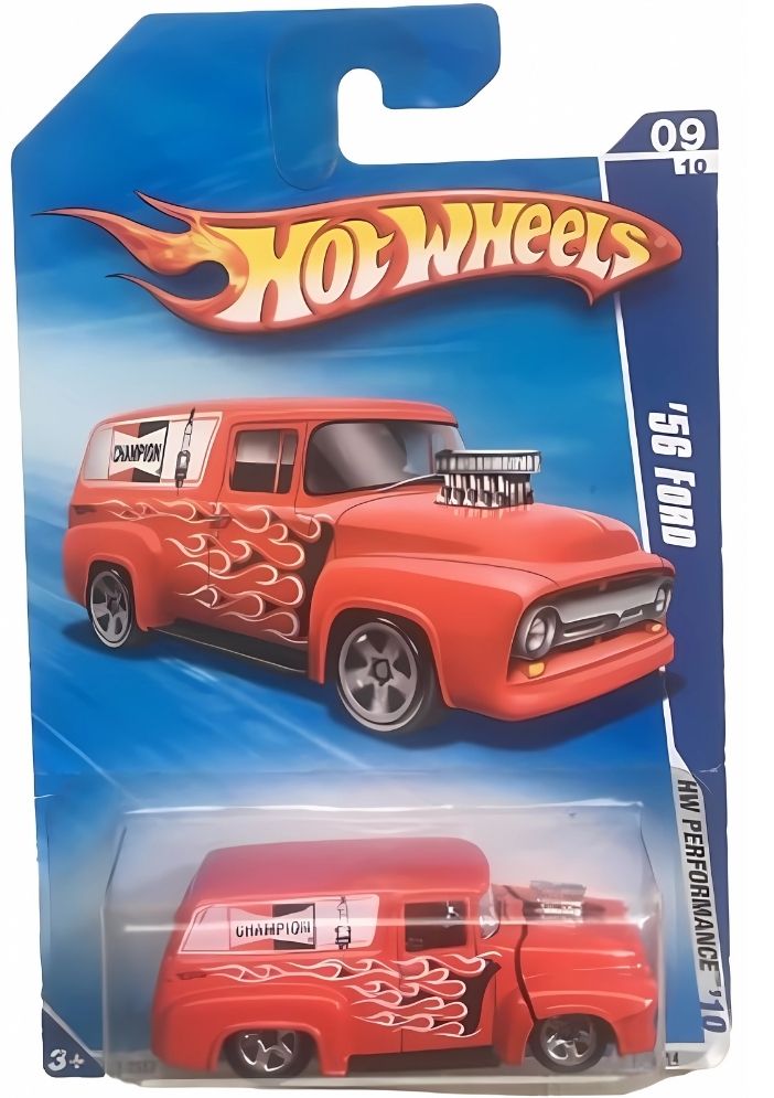 Hot Wheels '56 Ford (Vermelho Flame) R7532 é uma miniatura colecionável lançada em 2010 como parte da linha HW Performance. A picape, conhecida como '56 Ford F-100, é do tipo die-cast (metal injetado) e tem escala 1:64 é uma peça popular entre colecionadores.