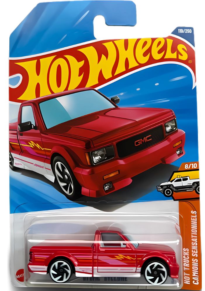 Hot Wheels JBB89 é a miniatura de um '91 GMC Syclone, um caminhão da linha Hot Trucks de 2025. O modelo faz parte da série principal (Mainline) e tem escala 1:64 e trata-se e uma peça colecionável.
