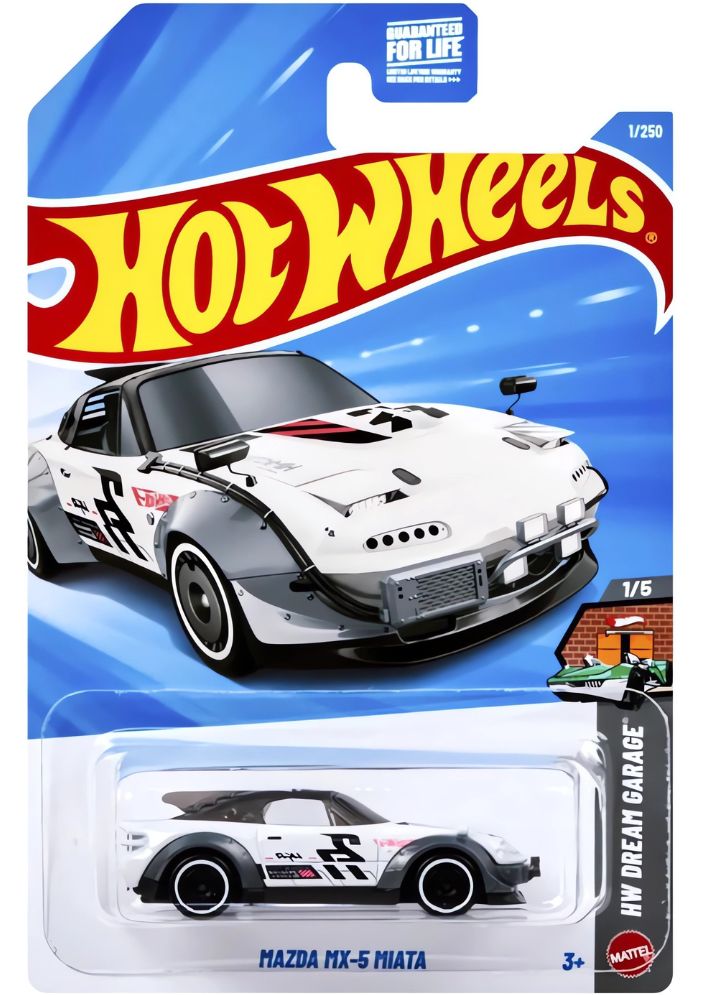 Hot Wheels Mazda MX-5 Miata (JJJ02) é um modelo em escala 1:64 lançado como parte da linha Mainline de 2026 no Lote B. Esta miniatura é particularmente especial por ser baseada no "Chimera", um Mazda MX-5 de 1990 modificado com estilo Cyberpunk e Kaido racer, que foi o grande vencedor do 2023 Hot Wheels Legends Tour