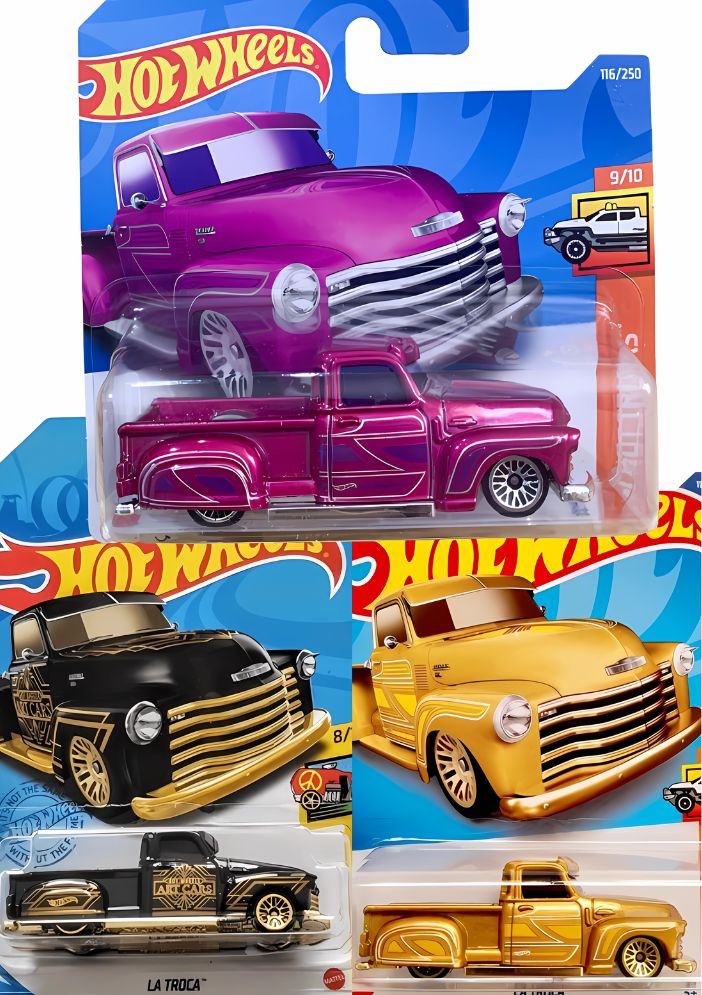 Este Lote com 3 Miniaturas Hot Wheels La Troca – Escala 1:64 traz um dos modelos mais icônicos da marca, conhecido pelo design robusto e acabamento detalhado.